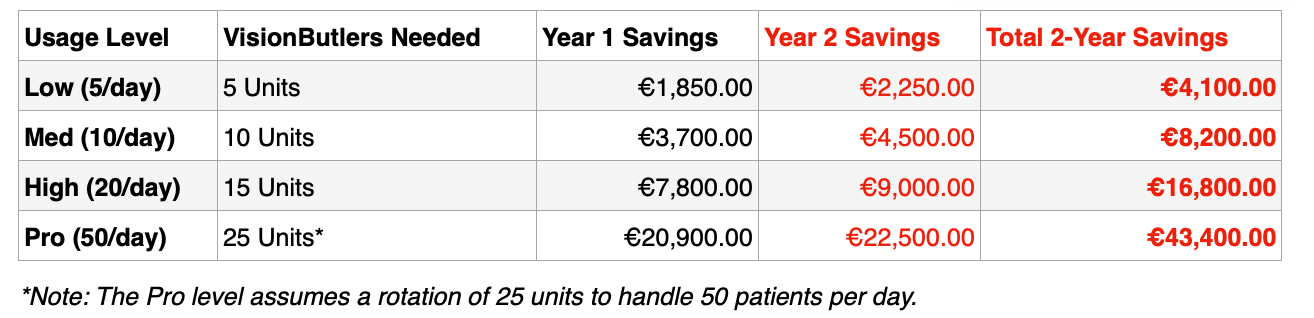 VisionButler Unit Cost: As low as €80.00 when purchased in clinical sets (5, 10, 15, or 20 units).